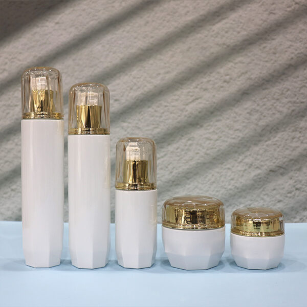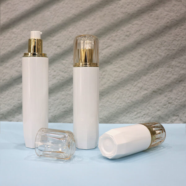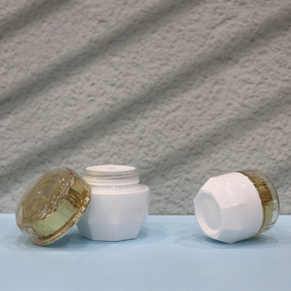 A bright white glass bottle,Diamond shaped packaging bottle,A bottle with a transparent yellow lid