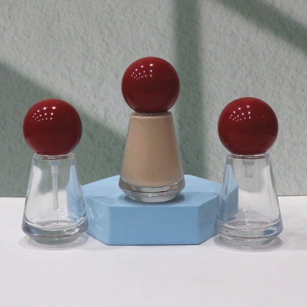 A glass bottle with a red spherical lid,Funnel-shaped glass bottle