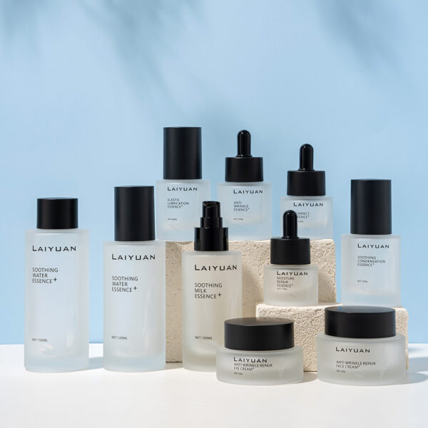 A set of glass bottles with multiple capacities,Frosted bottle,Short and chubby cylindrical bottle