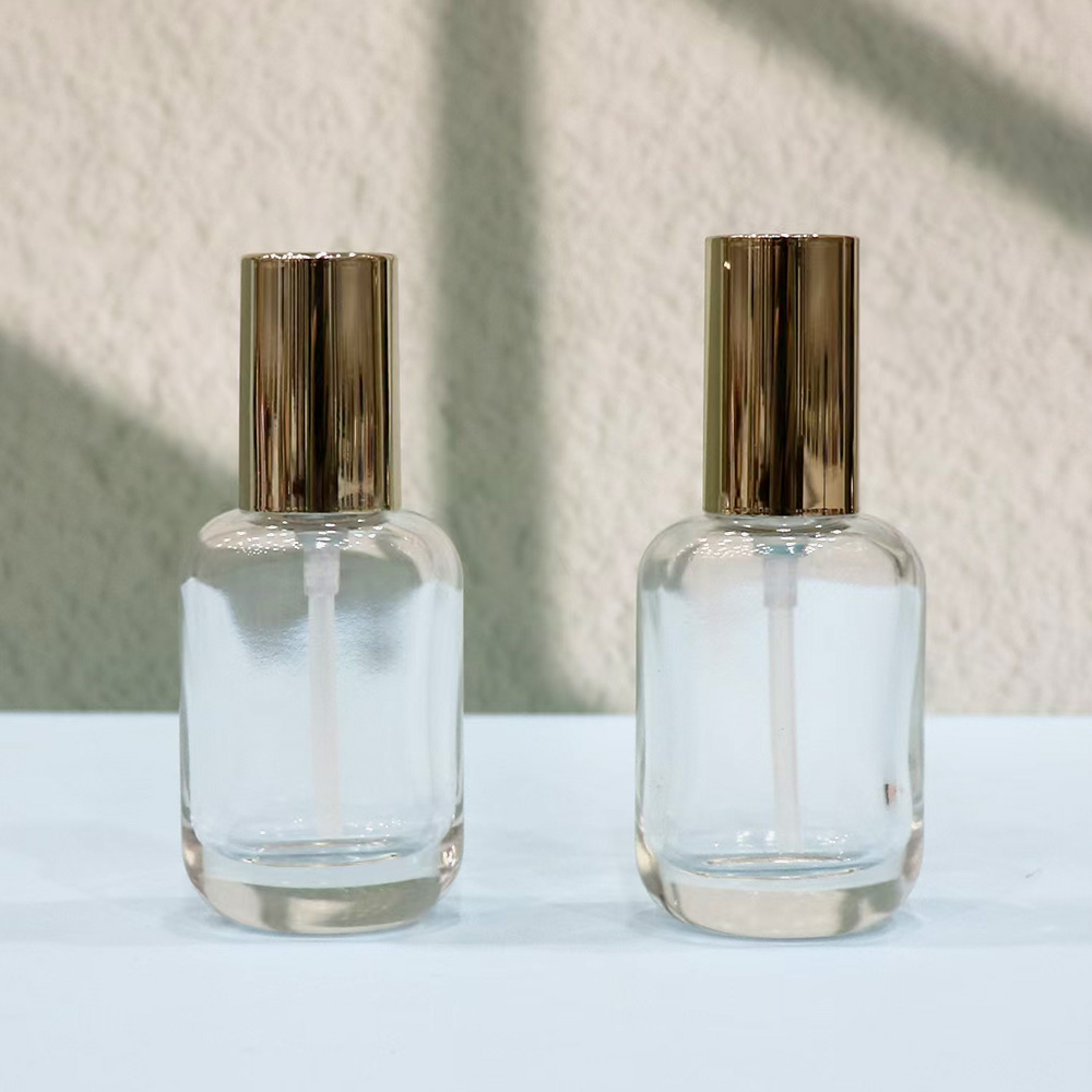 An oval shaped bottle,Pump head bottle,Cosmetics glass bottle