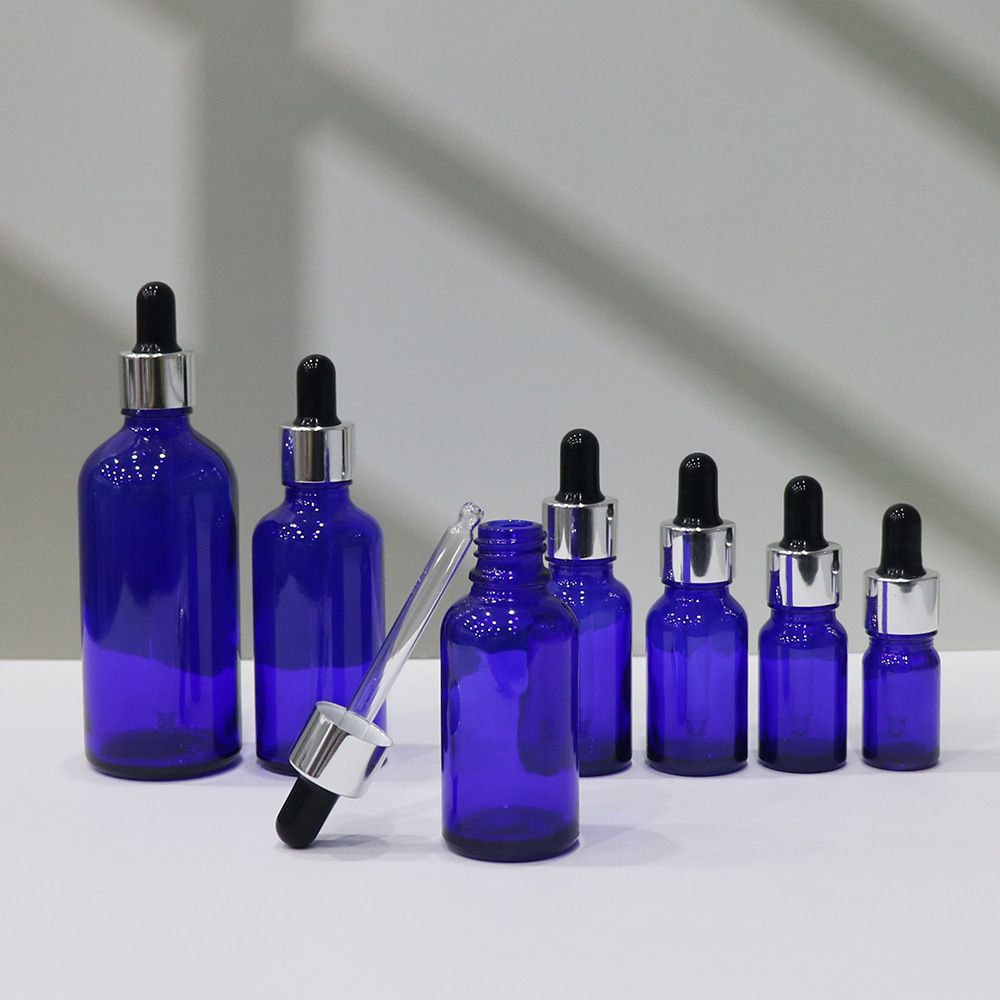 Blue glass dropper bottle