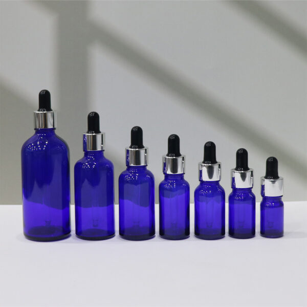 Blue glass bottle, essential oil bottle, dropper bottle, cosmetics bottle, skincare bottle, laboratory bottle