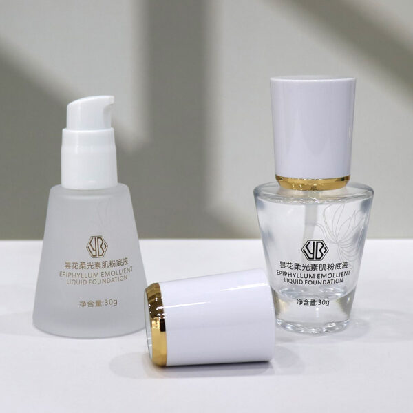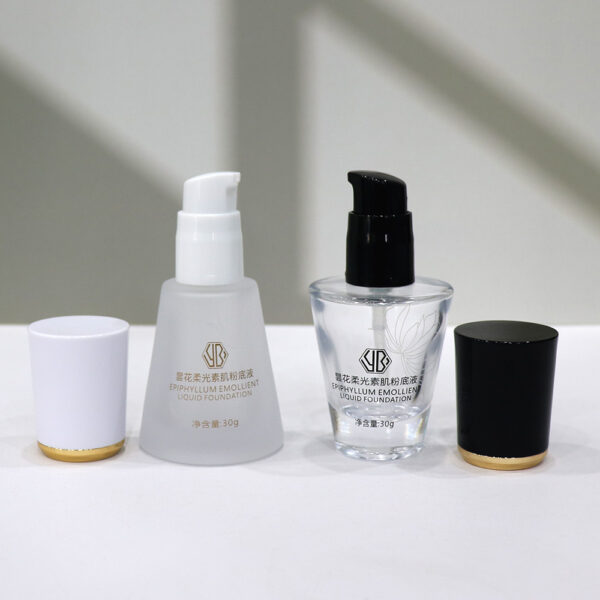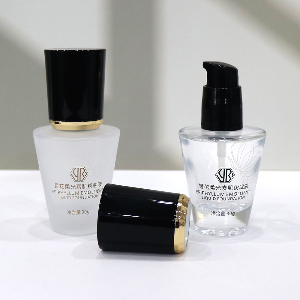 Cone shaped bottle, frosted cosmetic bottle, gold-plated lid