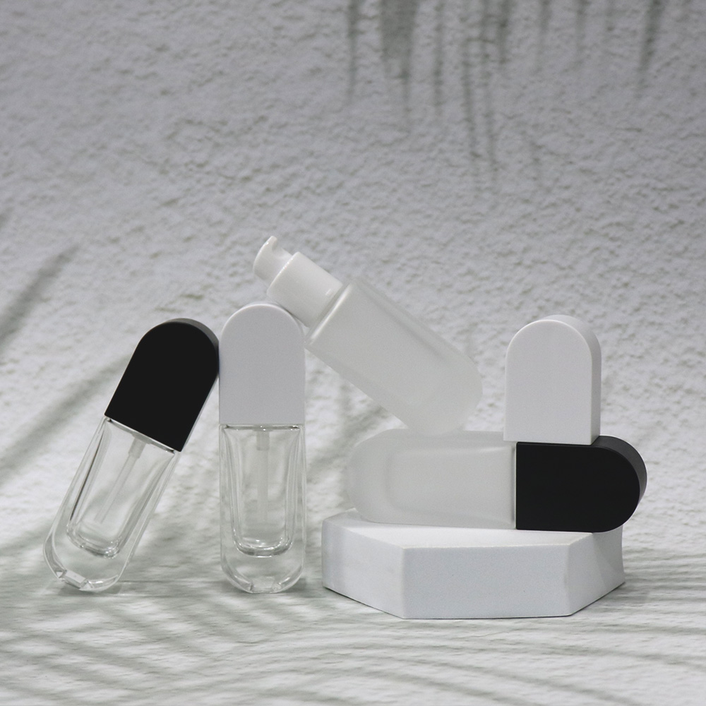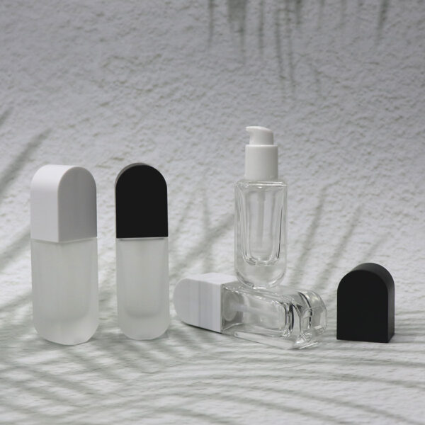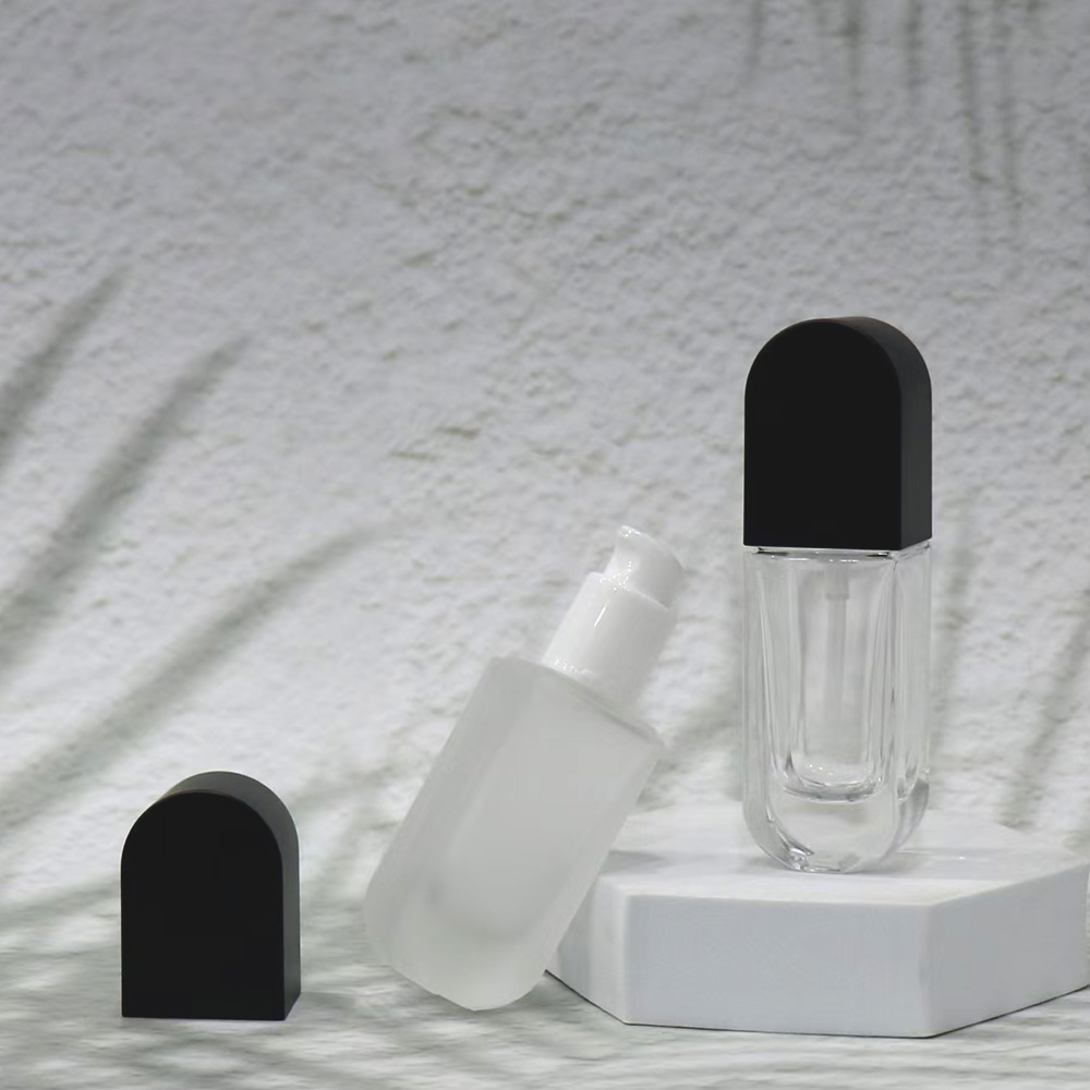 Curved glass bottle,Frosted foundation make-up bottle,A bottle with a matte black cap