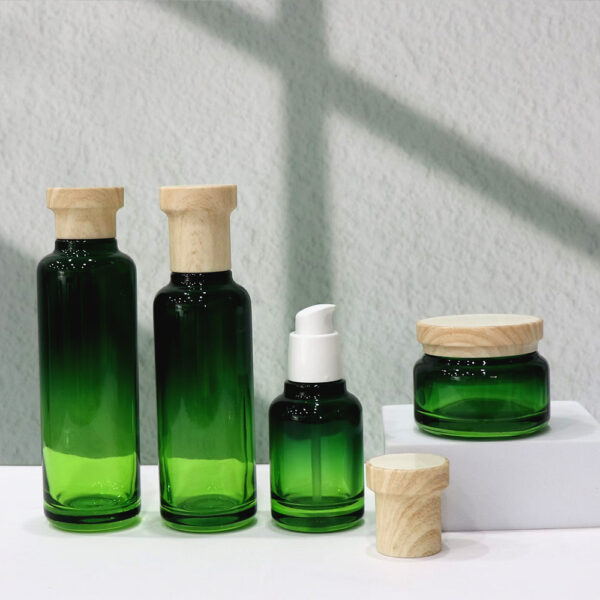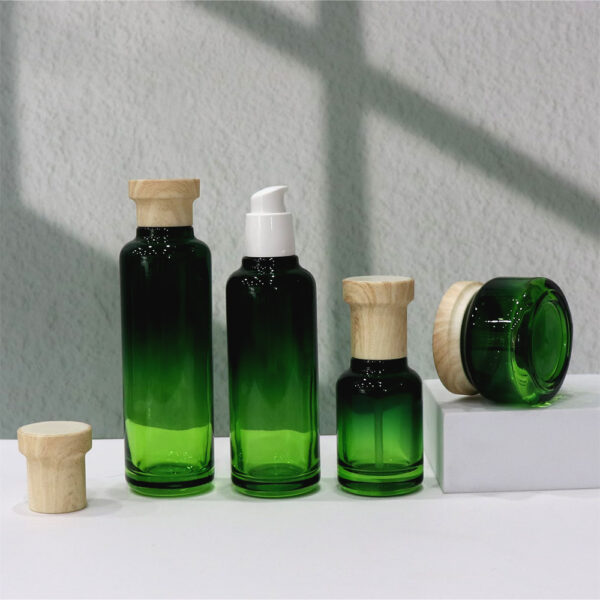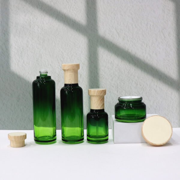/ Customized cosmetic packaging bottles,Glass bottle with wood grain lid,Press the essence bottle