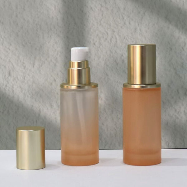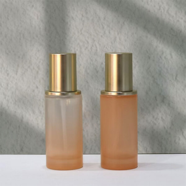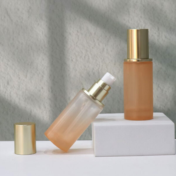 Cosmetics glass bottle.Frosted bottle.Gold plated lid