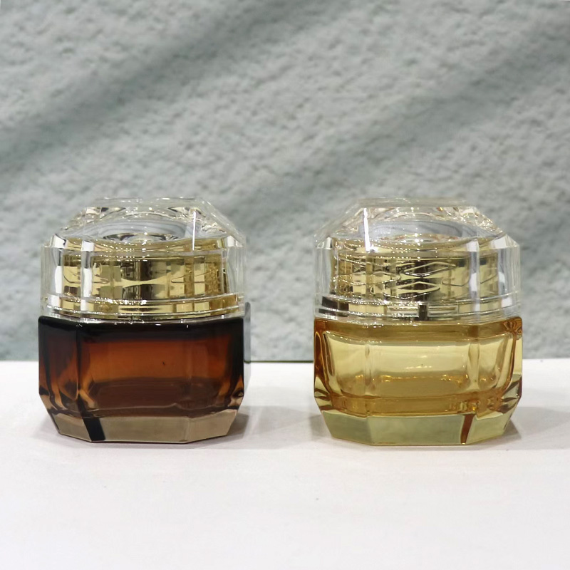 Direct selling 50g cosmetics skin care set bottle, polygon face cream bottle, high-end glass bottle, essence cream empty bottle