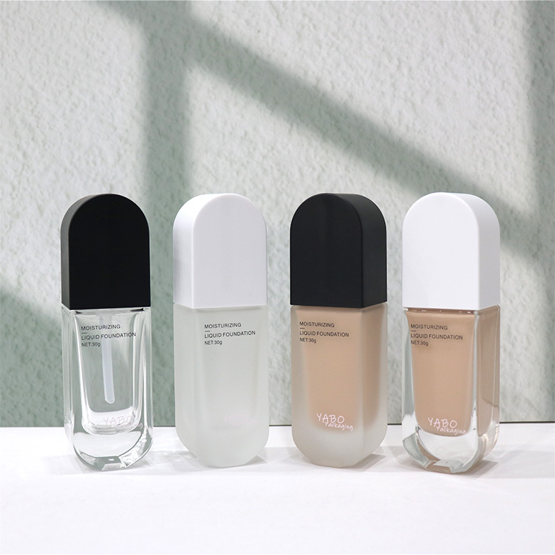 Empty cosmetic 30ml glass lotion pump packaging bottle