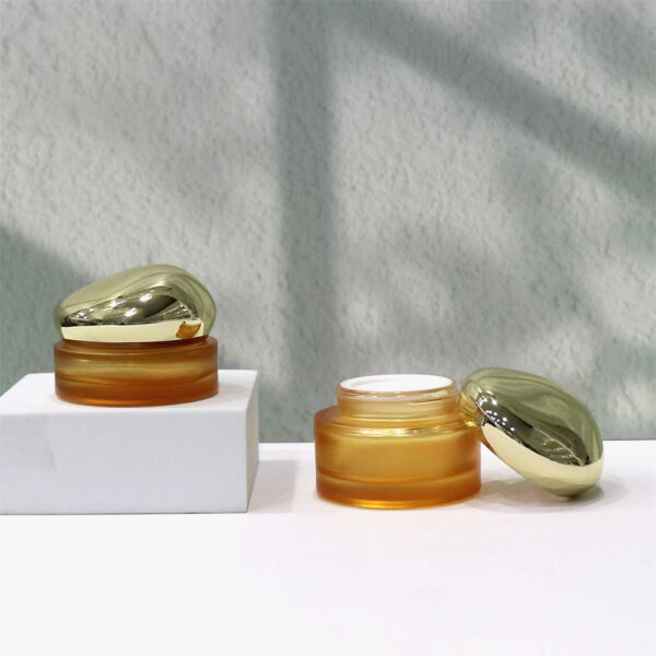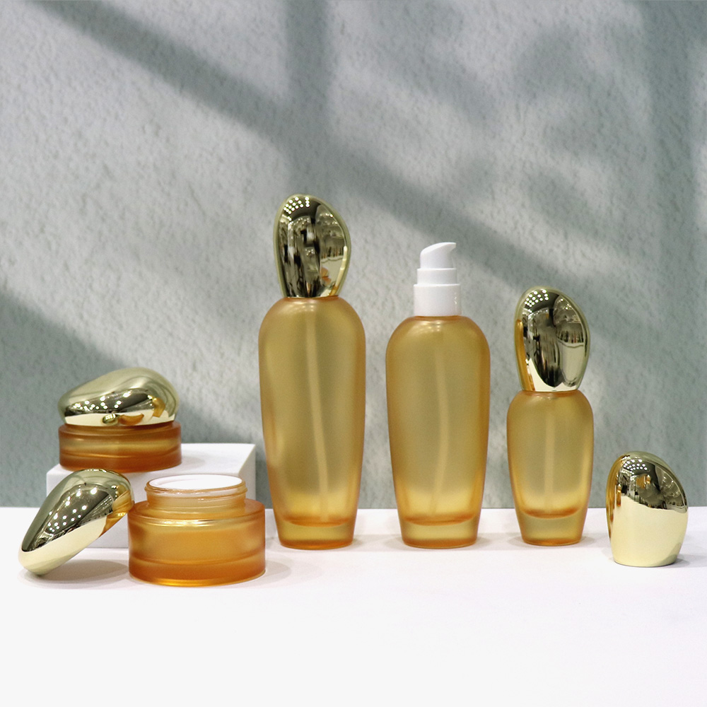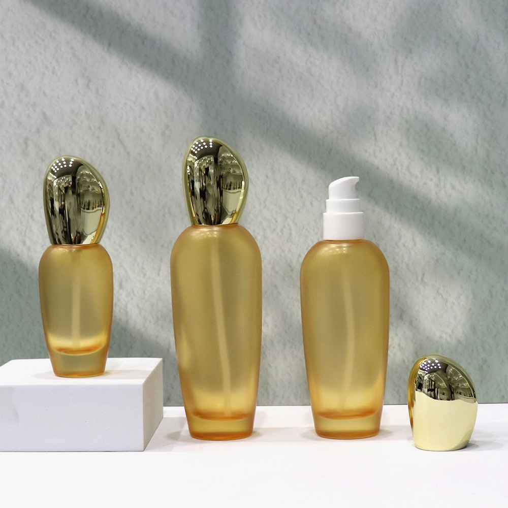 Transparent yellow bottle,Gold-plated lid,High end glass bottles