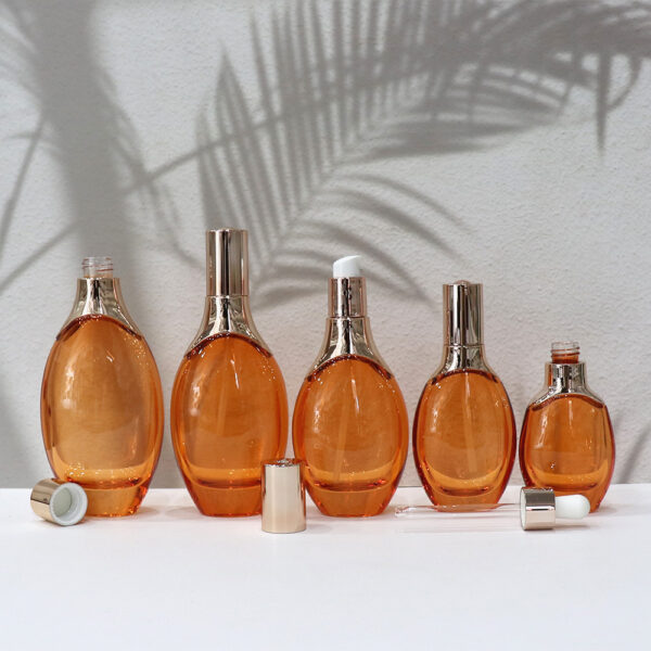 The newly designed unique glass bottle is suitable for skin care products, water lotion bottles, essence liquid bottles, face cream bottles and eye cream bottles