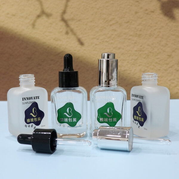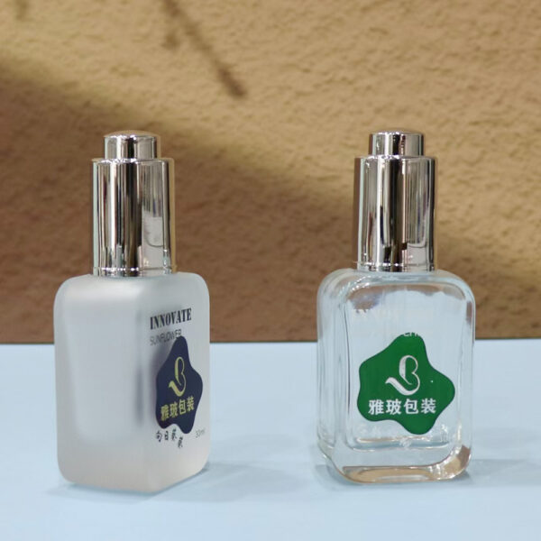 / Flat square dropper bottle,Frosted essential oil bottle,Silver plated drip pump bottle