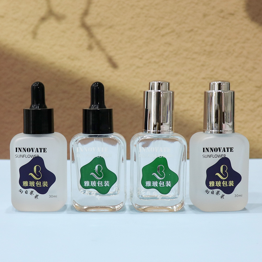 Flat square dropper bottle,Frosted essential oil bottle,Silver plated drip pump bottle