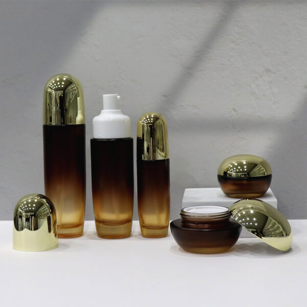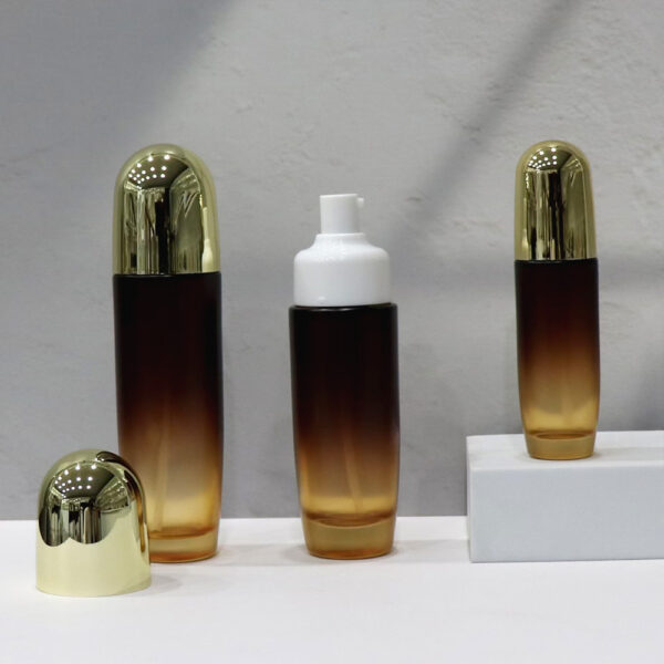 Frosted amber gradient glass bottle,Skincare product set bottle,A bottle with a pump head