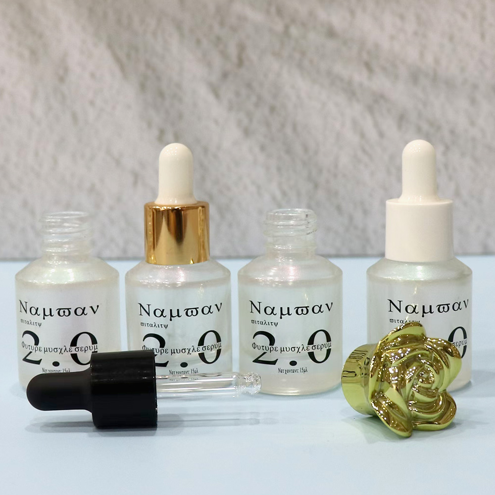 Frosted skincare glass bottle,Press the rubber cap bottle