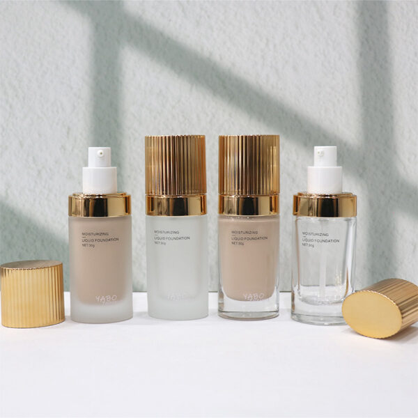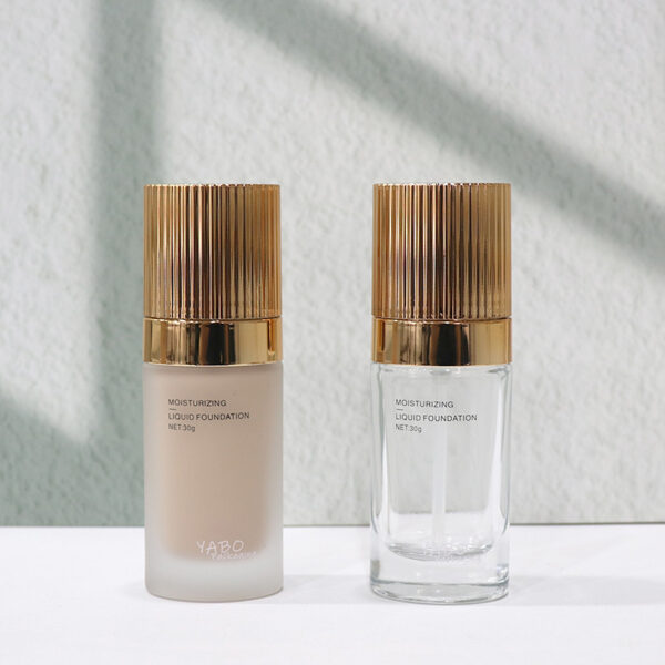 Cosmetics glass bottle.Frosted bottle.Gold plated lid