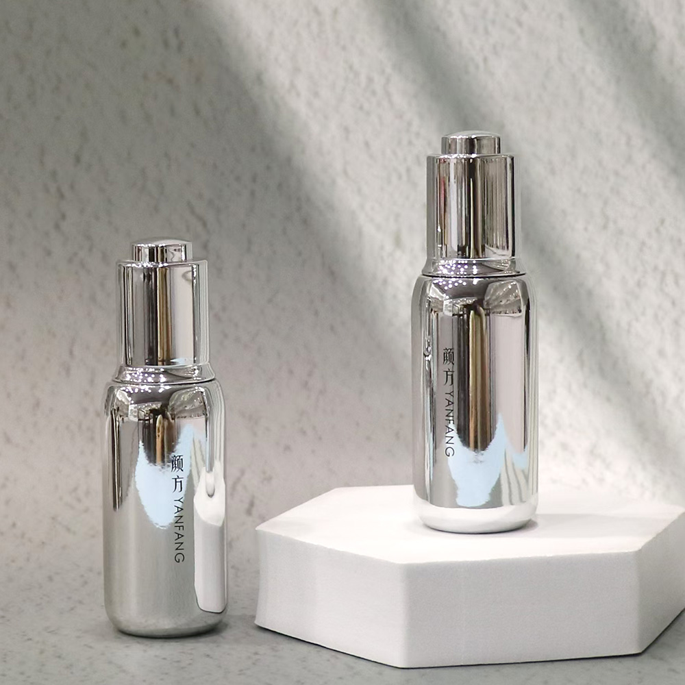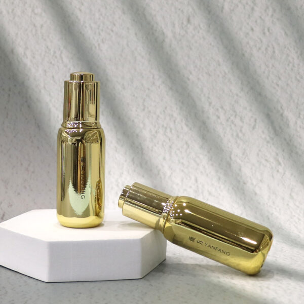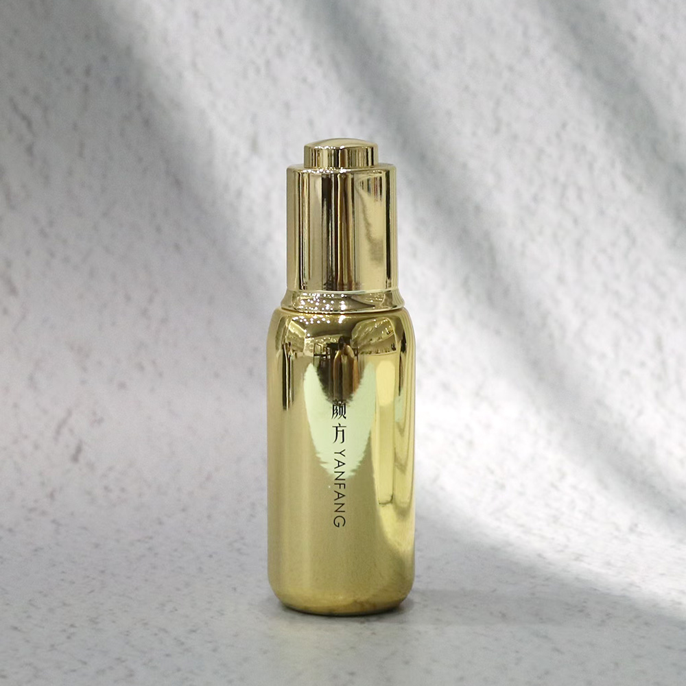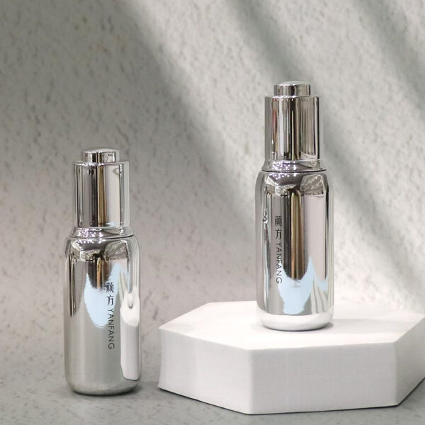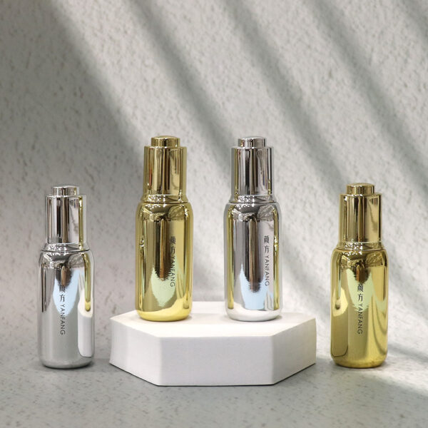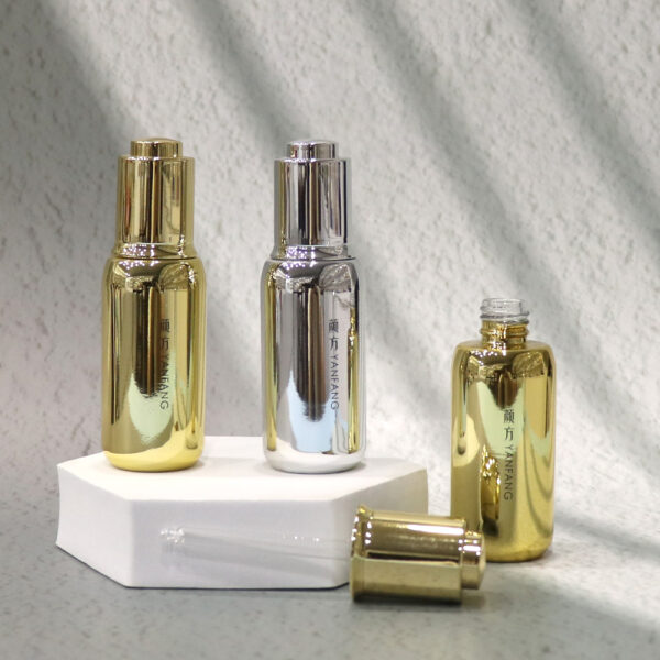 Glass material. Electroplated gold dropper bottle, electroplated silver dropper bottle
