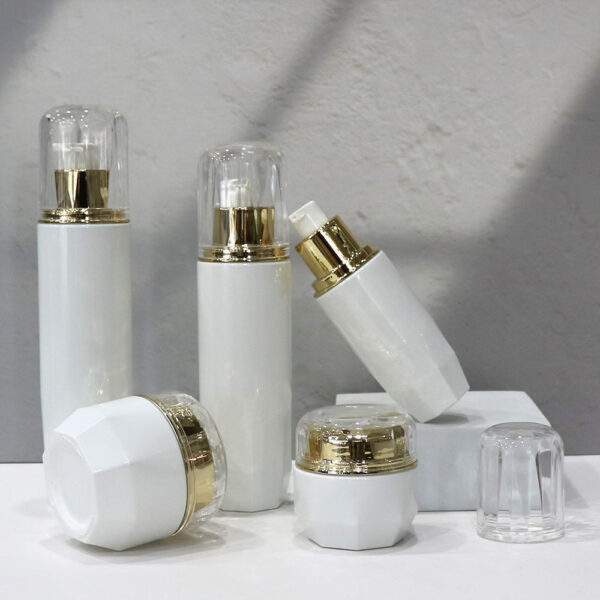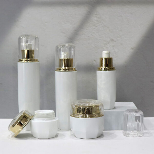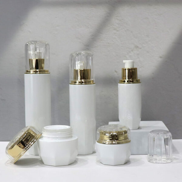 Glass material skincare bottle,Bright white glass bottle,Wide mouthed bottle,Bottom polygonal bottle