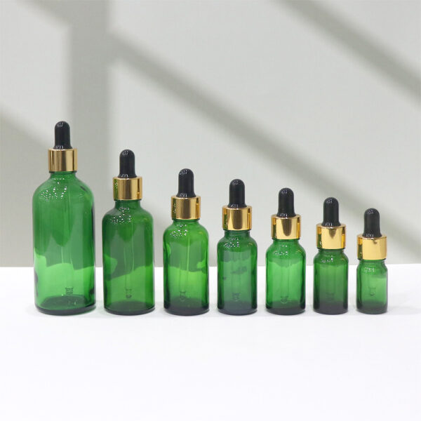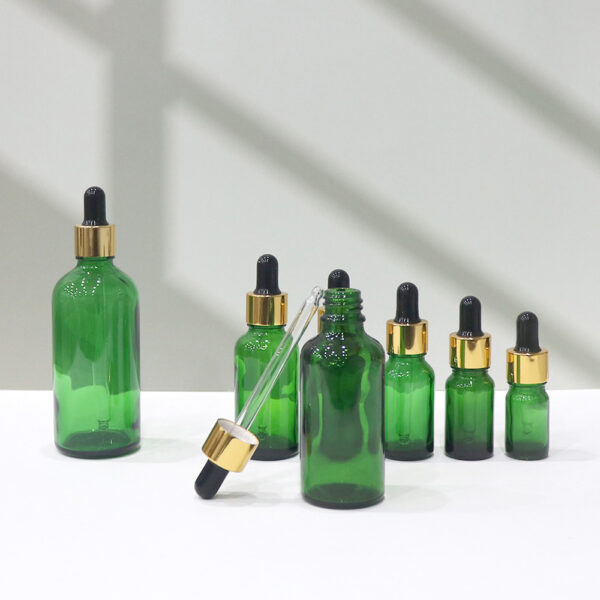 Green essential oil bottle, glass dropper bottle, cosmetic glass bottle