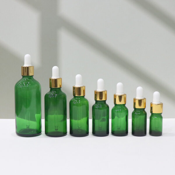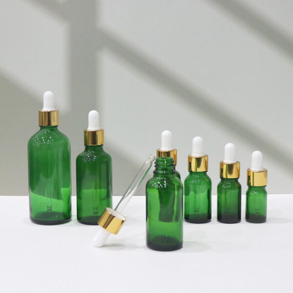 Green essential oil bottle, glass dropper bottle, sealed and leak proof