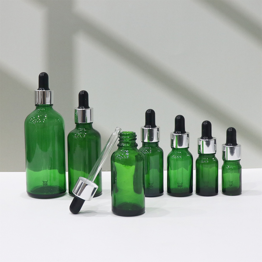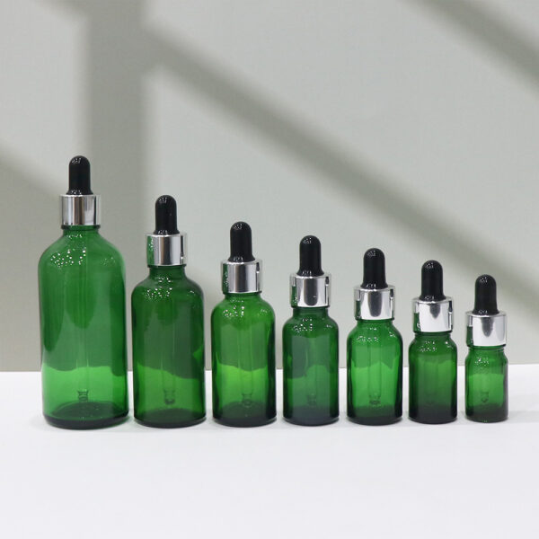 Green glass dropper bottle, laboratory dropper bottle, essential oil bottle