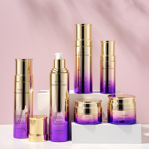 High grade electroplated color cosmetics glass bottle skin care product packaging bottle water emulsion essence liquid bottle face cream bottle