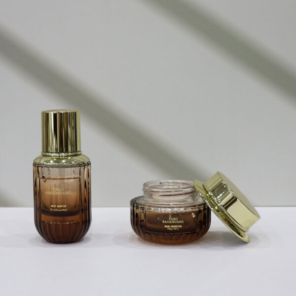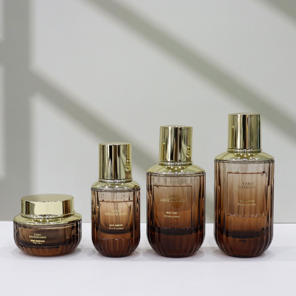 Manufacturer direct sales thick bottom vertical pattern bottle skincare packaging bottle, glass set bottle