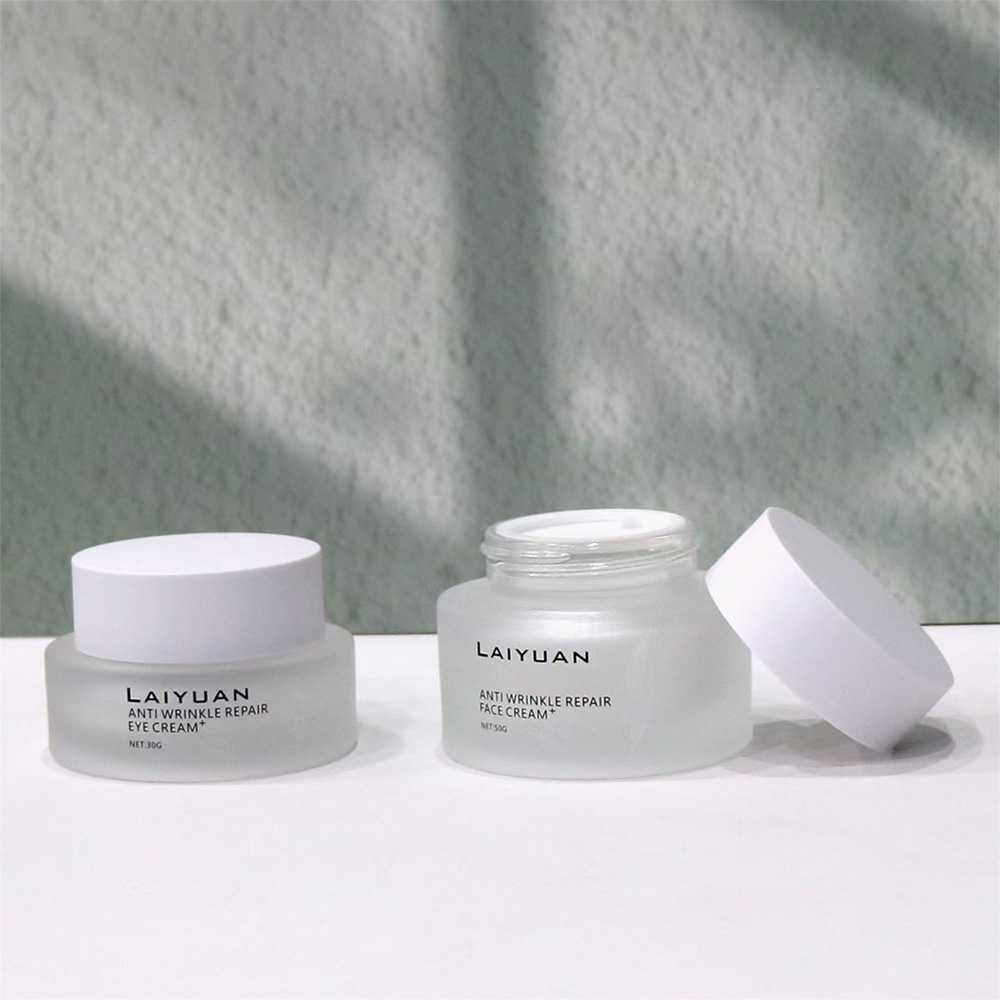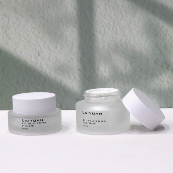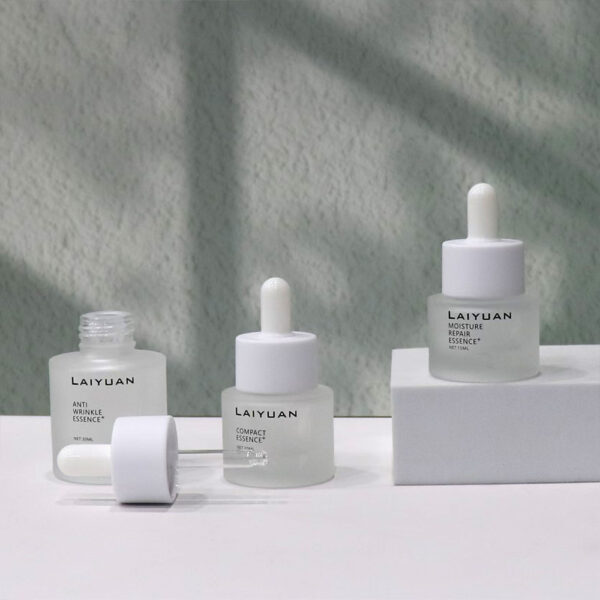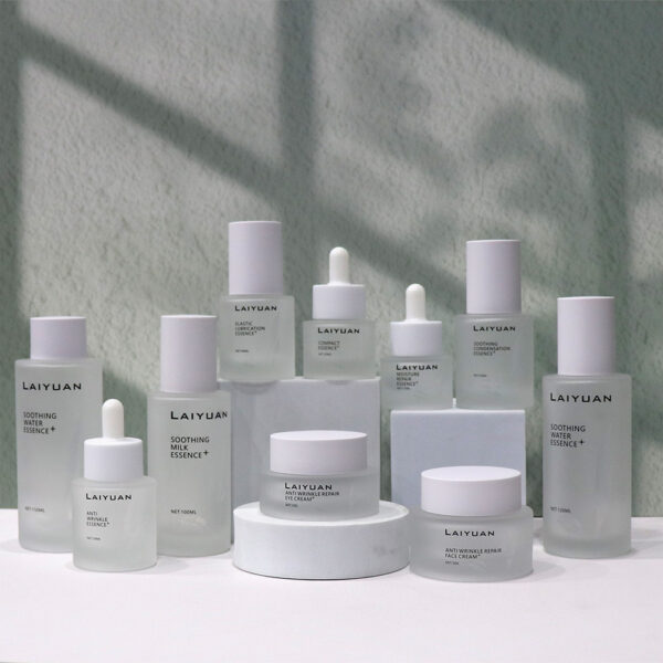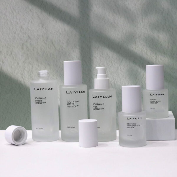 Minimalist medical beauty packaging bottle, matte white lid, frosted bottle body, cosmetic glass bottle