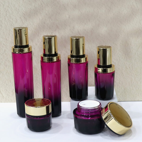 The newly designed unique glass bottle is suitable for skin care products, water lotion bottles, essence liquid bottles, face cream bottles and eye cream bottles