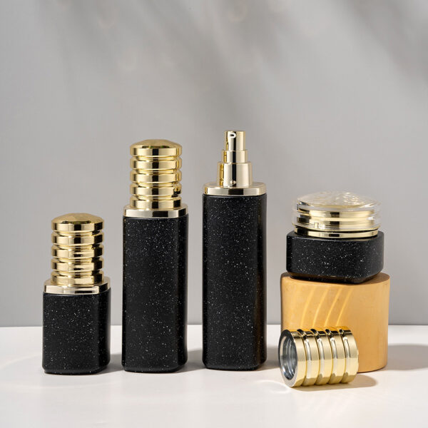 New square glass bottle The effect of imitation stone sprinkling spray coating process