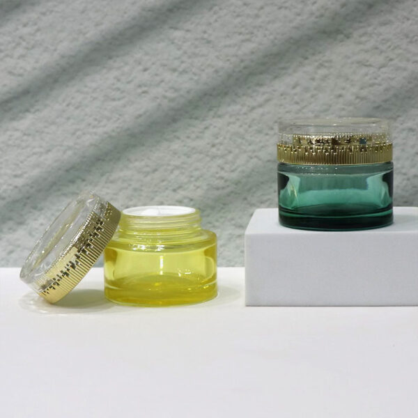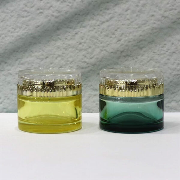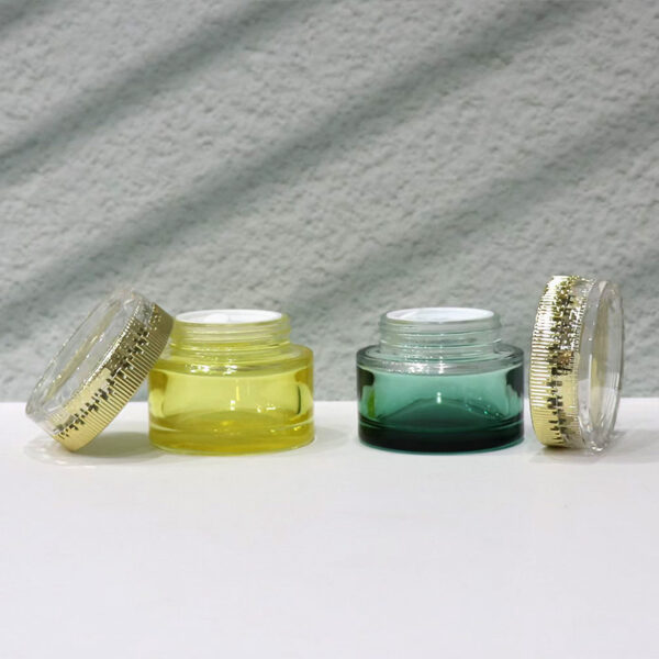 New green gradient glass bottle, 50g vertical patterned lid glass packaging bottle, empty bottle for cosmetics and skincare products