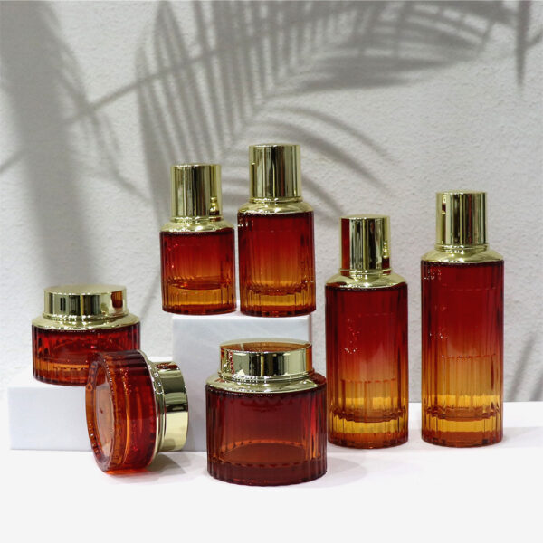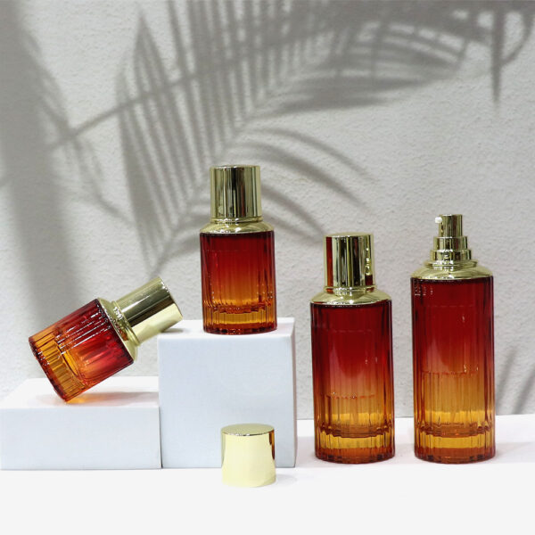 New striped thick bottom bottle Water and lotion glass bottle packaging,Gold plated press pump head bottle