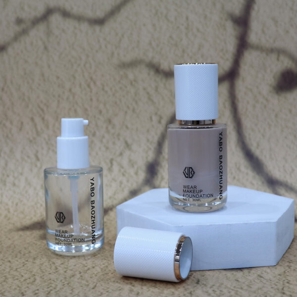 An oval shaped bottle,Pump head bottle,Cosmetics glass bottle