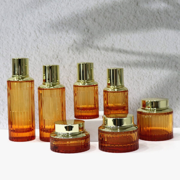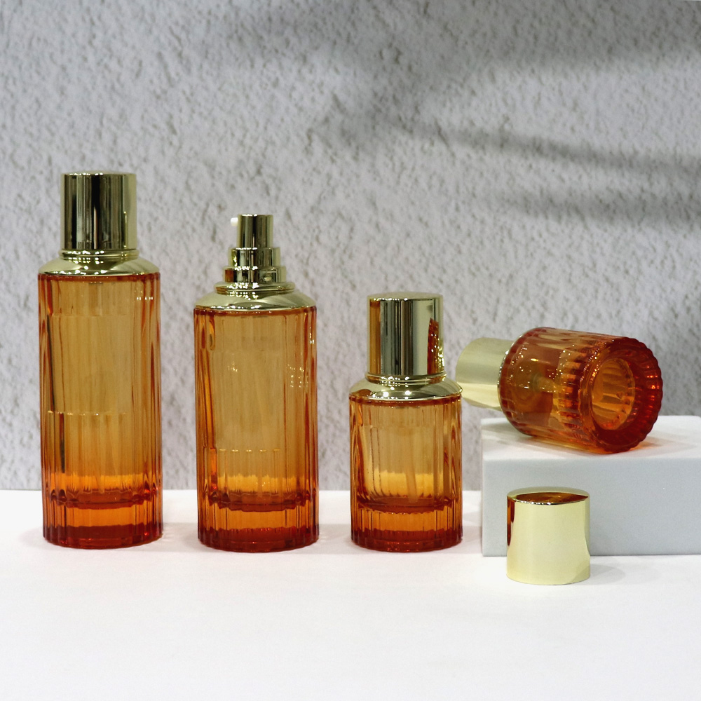 Roman cylindrical glass bottle,Skincare bottles with multiple vertical lines