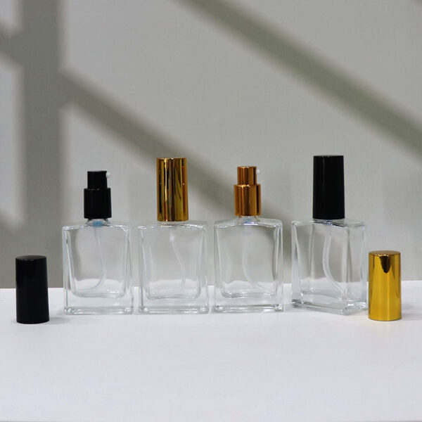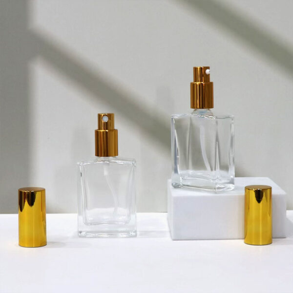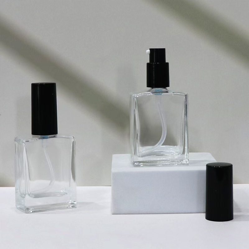 Screw mouth flat square bottle, 50ml glass bottle, spray bottle, glass perfume bottle
