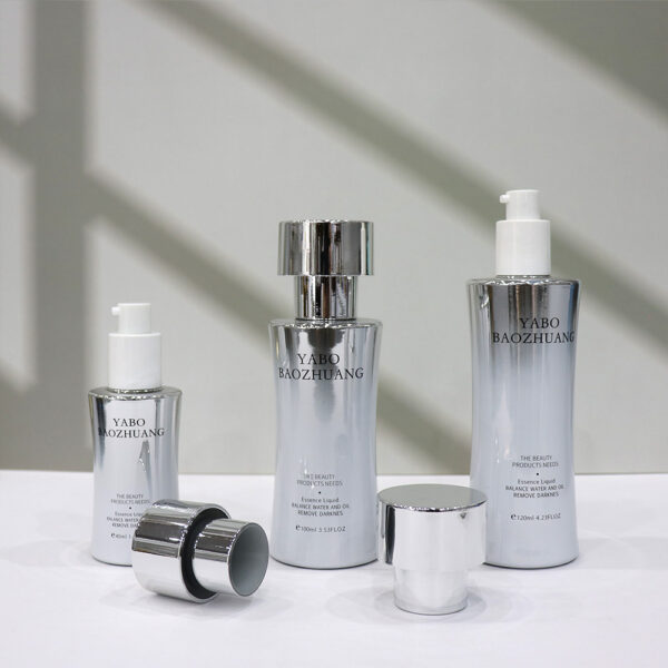Silver plated gradient white packaging bottle,Advanced glass bottle
