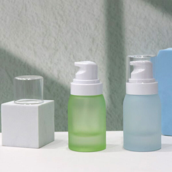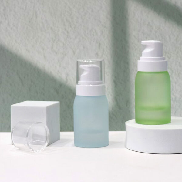 Cosmetics glass bottle.Frosted bottle.Gold plated lid