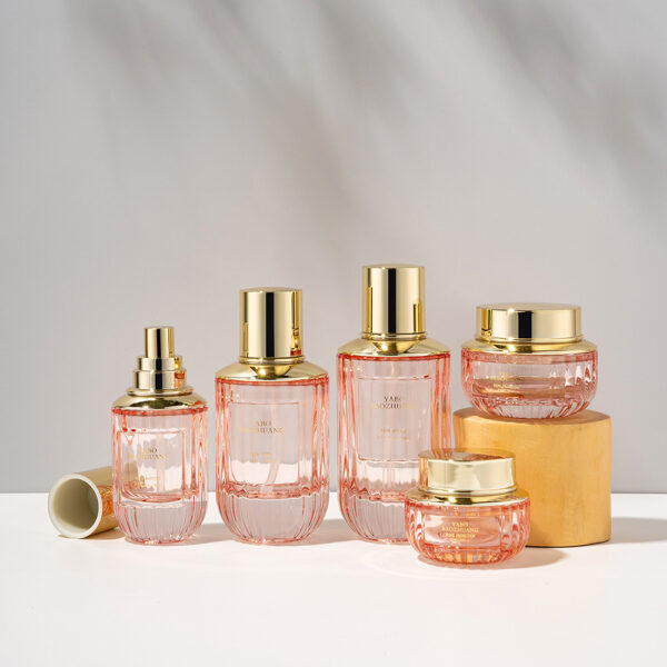 Transparent yellow bottle,Gold-plated lid,High end glass bottles