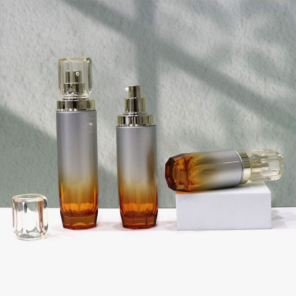 Transparent yellow lid gold-plated pump head set glass bottle