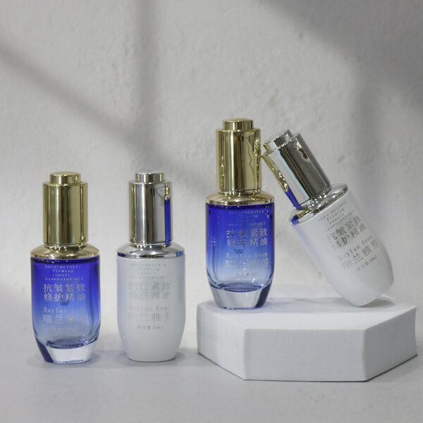 Frosted skincare glass bottle,Press the rubber cap bottle