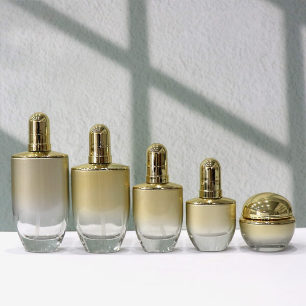 The newly designed unique glass bottle is suitable for skin care products, water lotion bottles, essence liquid bottles, face cream bottles and eye cream bottles