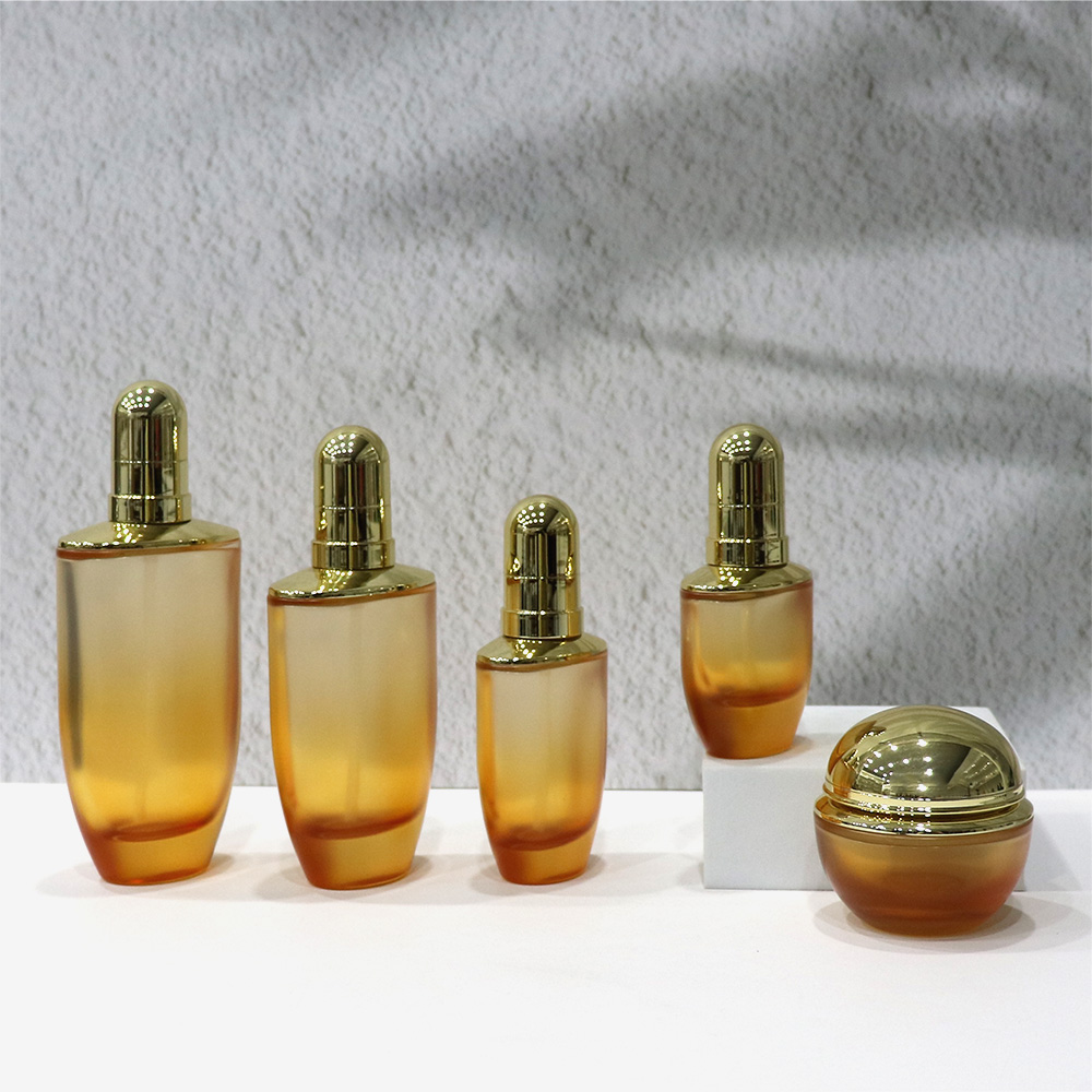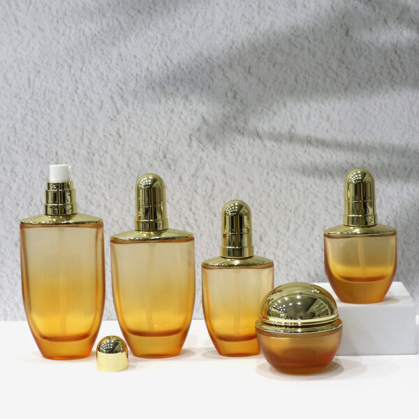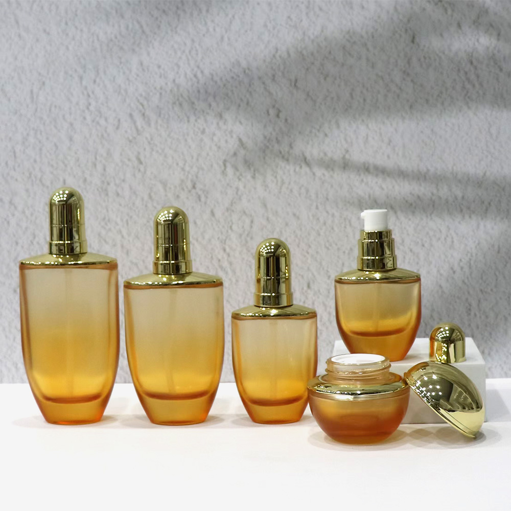 U-shaped glass packaging bottle set,Cosmetic press pump head lotion bottle