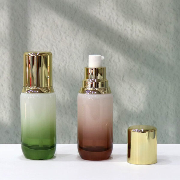 Water emulsion essence solution bottle, 50ml bottle with pump head, Guangzhou skin care product bottle, glass foundation make-up bottle